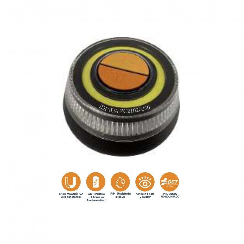 CÓMODO. Máxima comodidad y sencillez de uso. Presionando el botón de encendido y abriéndolo a cualquier superficie metálica. Empezará a emitir una señal destellante color naranja. A su vez, cuenta con un imán que incorpora la base. Segura, con una correcta sujeción al vehículo hasta en las condiciones más extremas.